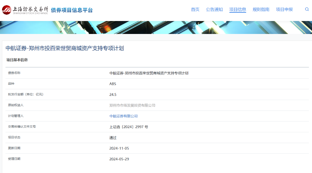 鄭州市投百榮世貿商城資產(chǎn)支持專項計劃獲上交所通過