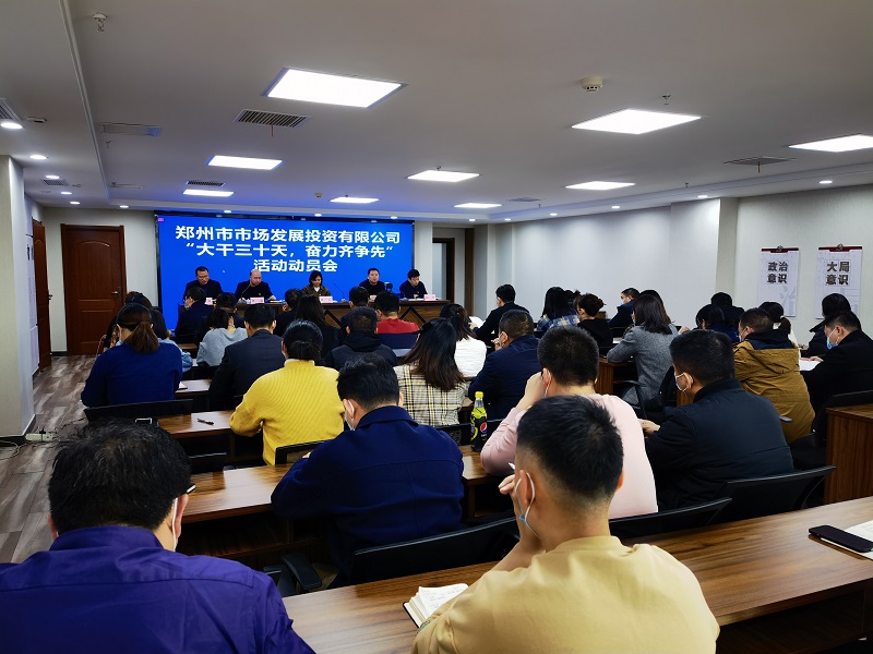 12月6日下午,鄭州市市場發(fā)展投資有限公司召開“大干三十天,奮力齊爭先”活動動員會。公司常務(wù)副總經(jīng)理趙潔,黨委委員、工會主席龐曉冰,黨委委員、總經(jīng)理助理孫濤,黨委委員、綜合管理中心總監(jiān)楊哲,黨委委員、財務(wù)管理中心總監(jiān)逯衛(wèi)川出席。