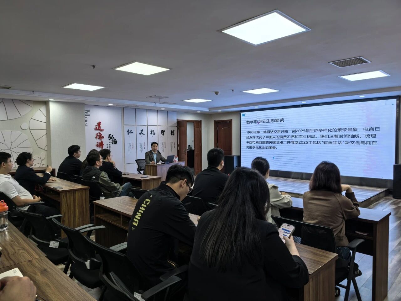 培訓(xùn)伊始,周浩圍繞國內(nèi)電商發(fā)展脈絡(luò),清晰梳理了行業(yè)從“規(guī)模擴(kuò)張”到“質(zhì)量創(chuàng)新”的演進(jìn)邏輯,并解讀了《電子商務(wù)法》實(shí)施等監(jiān)管政策帶來的行業(yè)影響。隨后,結(jié)合淘寶、京東、拼多多等典型案例,剖析綜合電商、垂直電商、直播電商等不同業(yè)態(tài)的運(yùn)營特點(diǎn),重點(diǎn)介紹了以“有魚生活”為代表的新文創(chuàng)電商融合文化IP與VR技術(shù)的創(chuàng)新模式和“跨境四小龍”(速賣通、SHEIN、TikTok、Temu)的發(fā)展優(yōu)勢,分析了海外倉為主流的物流體系現(xiàn)狀。